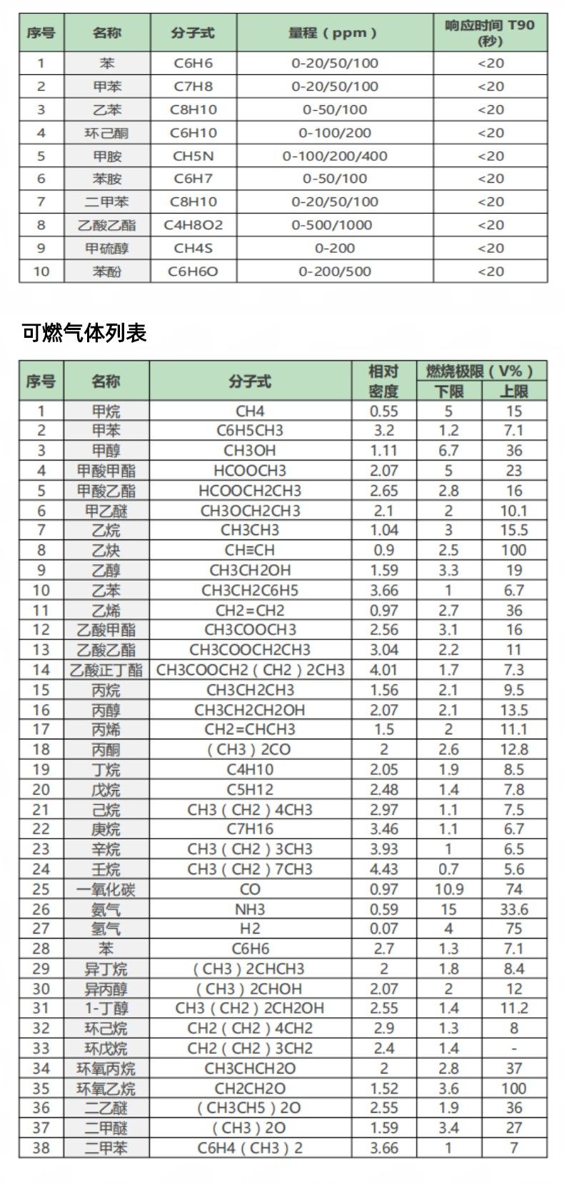 检测气体:可燃气体、有毒气体、VOC