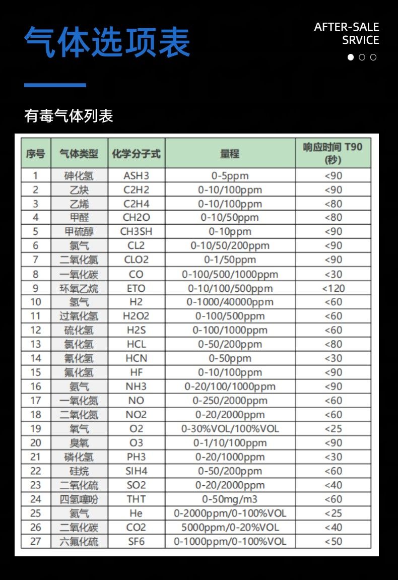 响应时间:T90<30S(不同气体传感器响应时间不同)